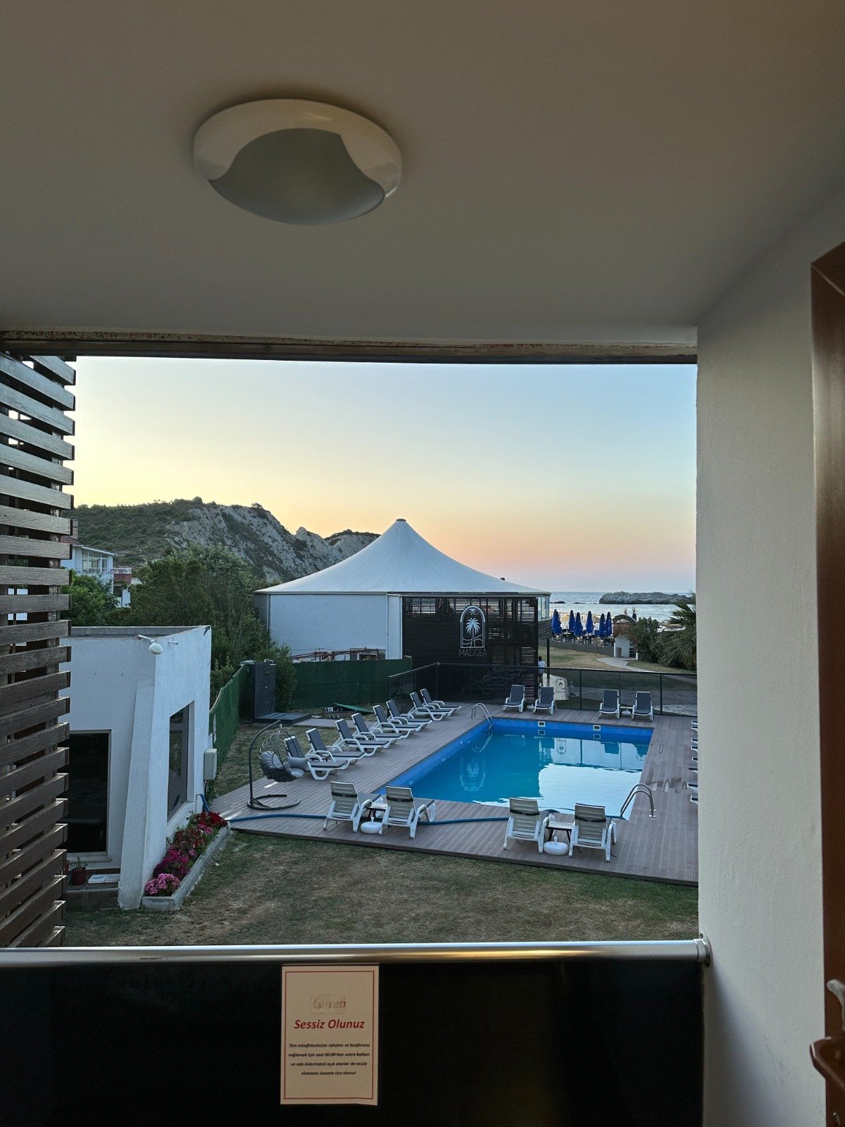 Mad Sea Beach Hotel’in Deniz ve bahçe manzaralı odaları, doğanın huzurlu dokunuşunu ve suyun serinleyici güzelliğini bir arada sunuyor. Geniş pencerelerden süzülen ışıkla aydınlanan bu odalar, sakin ve dinlendirici bir atmosfer sağlarken, özenle tasarlanmış dekorasyonu ile konforunuzu en üst düzeyde tutuyor. Uyanır uyanmaz gözlerinizi bahçenin yeşili ve havuzun mavisine açarak, her yeni güne tazelenmiş bir başlangıç yapabilirsiniz.