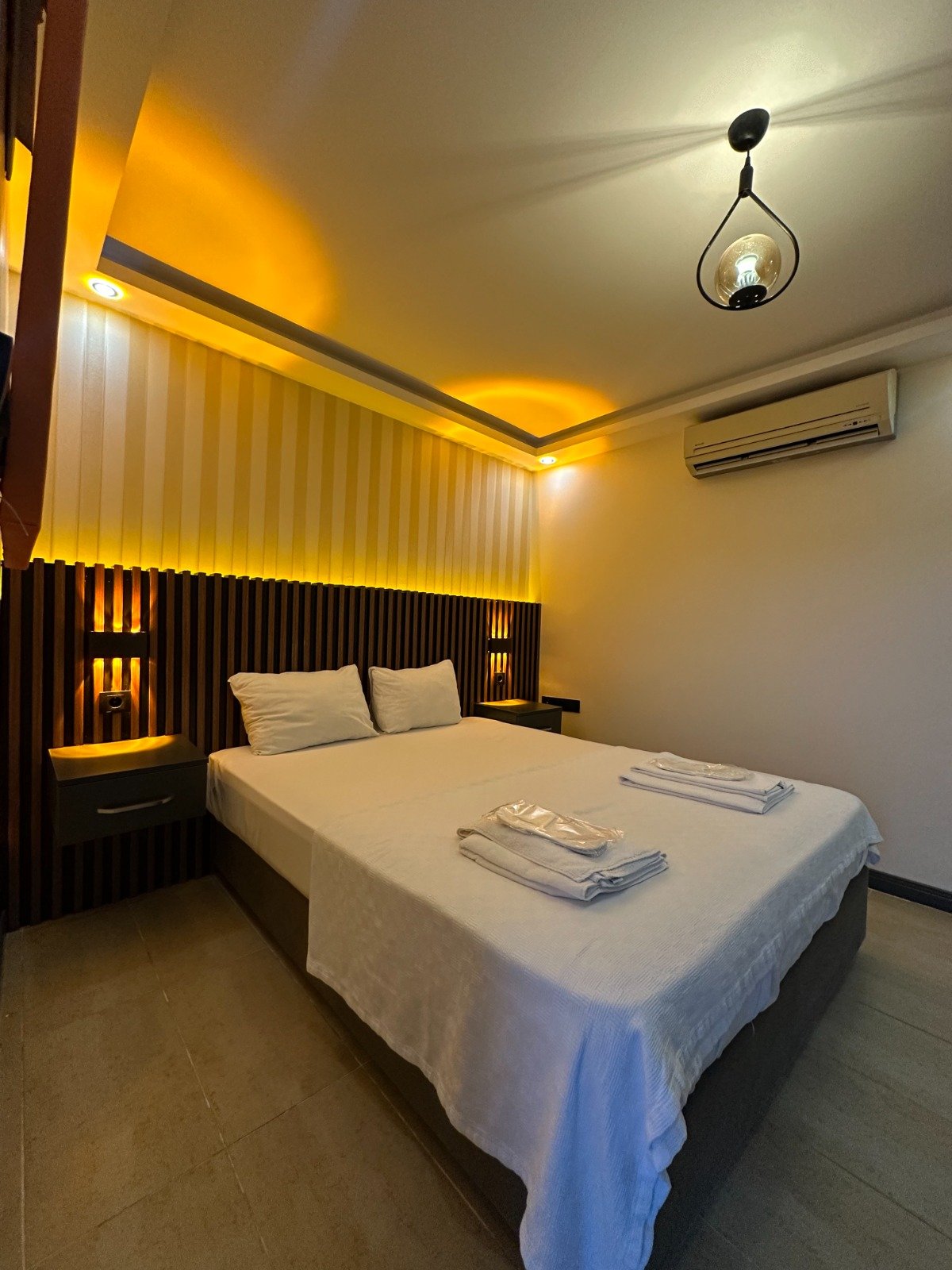 Mad Sea Beach Hotel’in Deniz ve bahçe manzaralı odaları, doğanın huzurlu dokunuşunu ve suyun serinleyici güzelliğini bir arada sunuyor. Geniş pencerelerden süzülen ışıkla aydınlanan bu odalar, sakin ve dinlendirici bir atmosfer sağlarken, özenle tasarlanmış dekorasyonu ile konforunuzu en üst düzeyde tutuyor. Uyanır uyanmaz gözlerinizi bahçenin yeşili ve havuzun mavisine açarak, her yeni güne tazelenmiş bir başlangıç yapabilirsiniz.